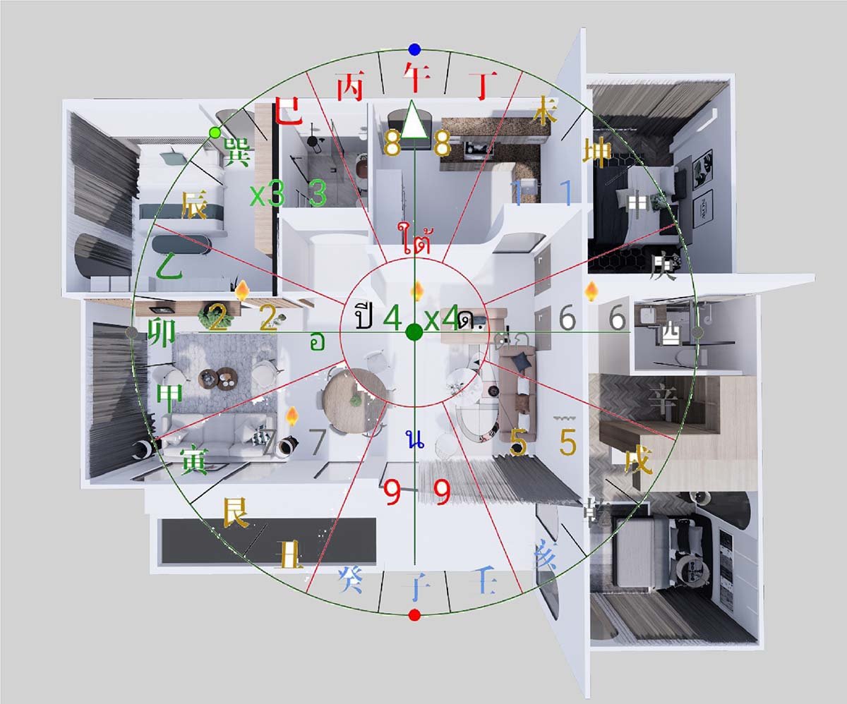 4. พิกัดตำแหน่งห้องต่างๆ จัดระบบแสงแดดให้ชัดเจน