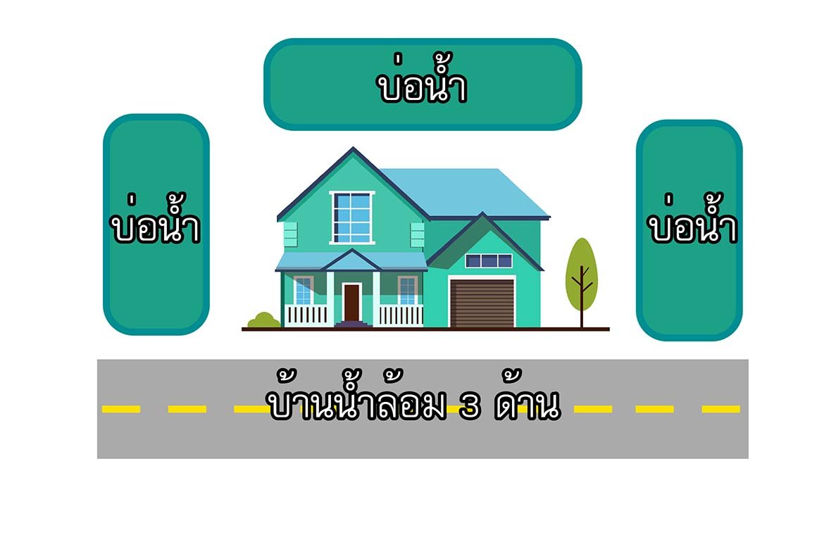 หน้าบ้านก็น้ำ หลังบ้านก็น้ำ ข้างบ้านก็น้ำ “บ่อน้ำประชิดอยู่รายล้อมบ้าน” บ้านฮวงจุ้ยลักษณะนี้ พบแต่ความวุ่นวาย สิ่งลี้ลับ ความลึกลับของนิสัยคนอยู่ สิ่งลี้ลับ ชอบประกอบกิจการลับๆ หรือมีจิตใจซ่อนเร้น ซึมเศร้าได้ เป็นหนึ่งในบ้านที่ฮวงจุ้ยหยินรุนแรงไม่ควรอาศัย แต่หากเป็นน้ำไหลจะกลับกันนะครับ