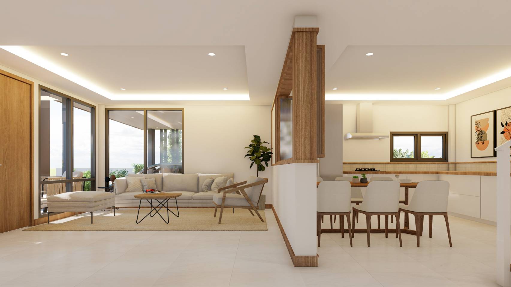 เคสนี้ เป็นการออกแบบโดยทางเจ้าของบ้านต้องการบรรยากาศสไตล์เรียบง่าย แต่คงความหรูหราทันสมัยใหม่ มีการใช้วัสดุผิวเรียบและลายไม้เป็นหลัก และมีรูปทรงที่สมดุลถูกต้องตามหลักฮวงจุ้ย