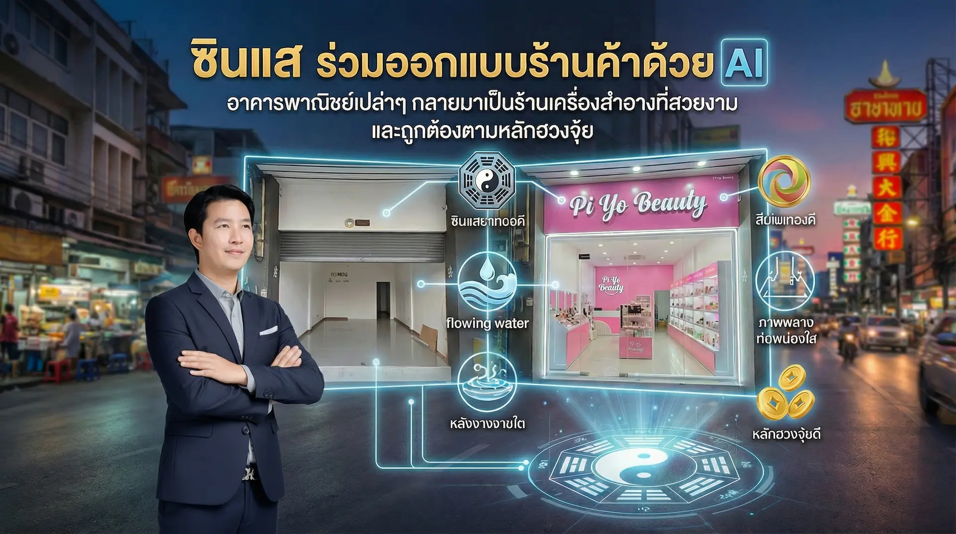 ตัวอย่าง - จากอาคารพาณิชย์ว่างเปล่า สู่ร้านเครื่องสำอางที่มีพลังงานฮวงจุ้ยที่ดี