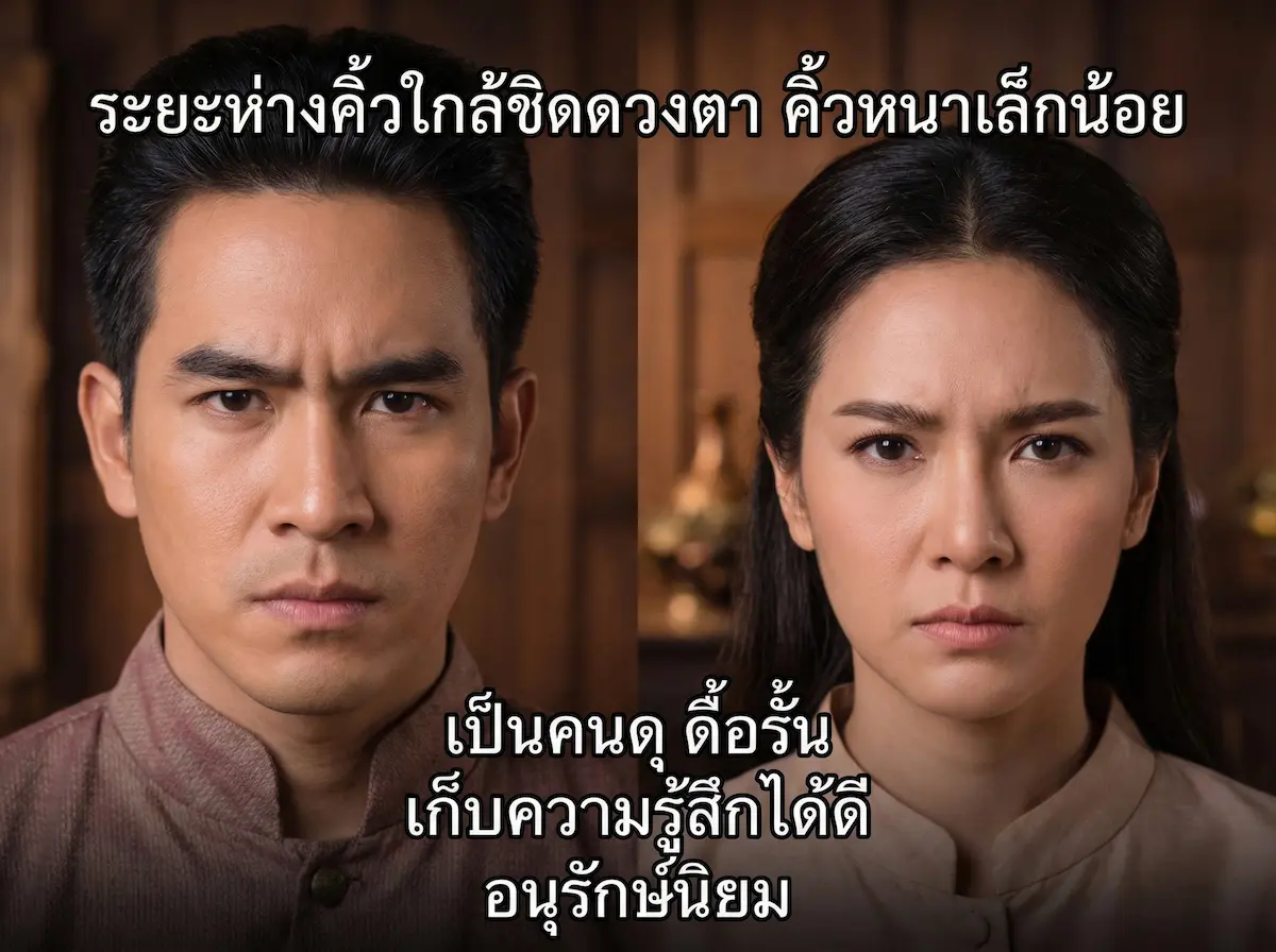 •คิ้วห่างกันมาก เป็นคนใจกว้าง ใจนักเลง มักวู่วาม เก็บความลับไม่ได้ มักก่อเรื่องยุ่งอยู่เสมอ