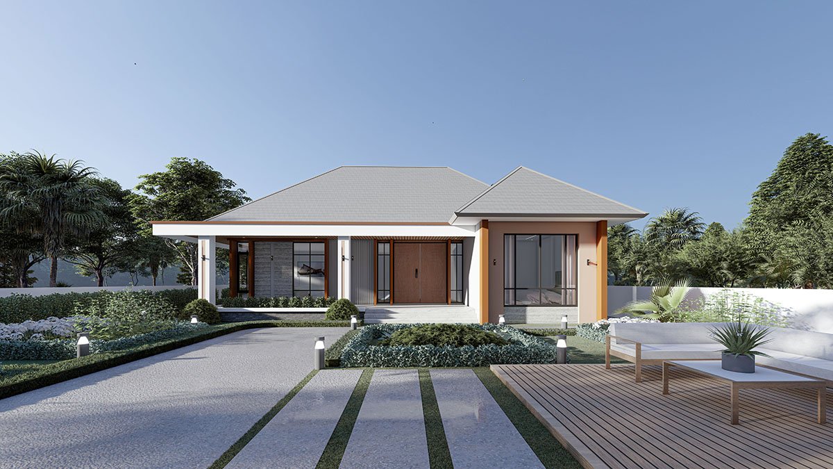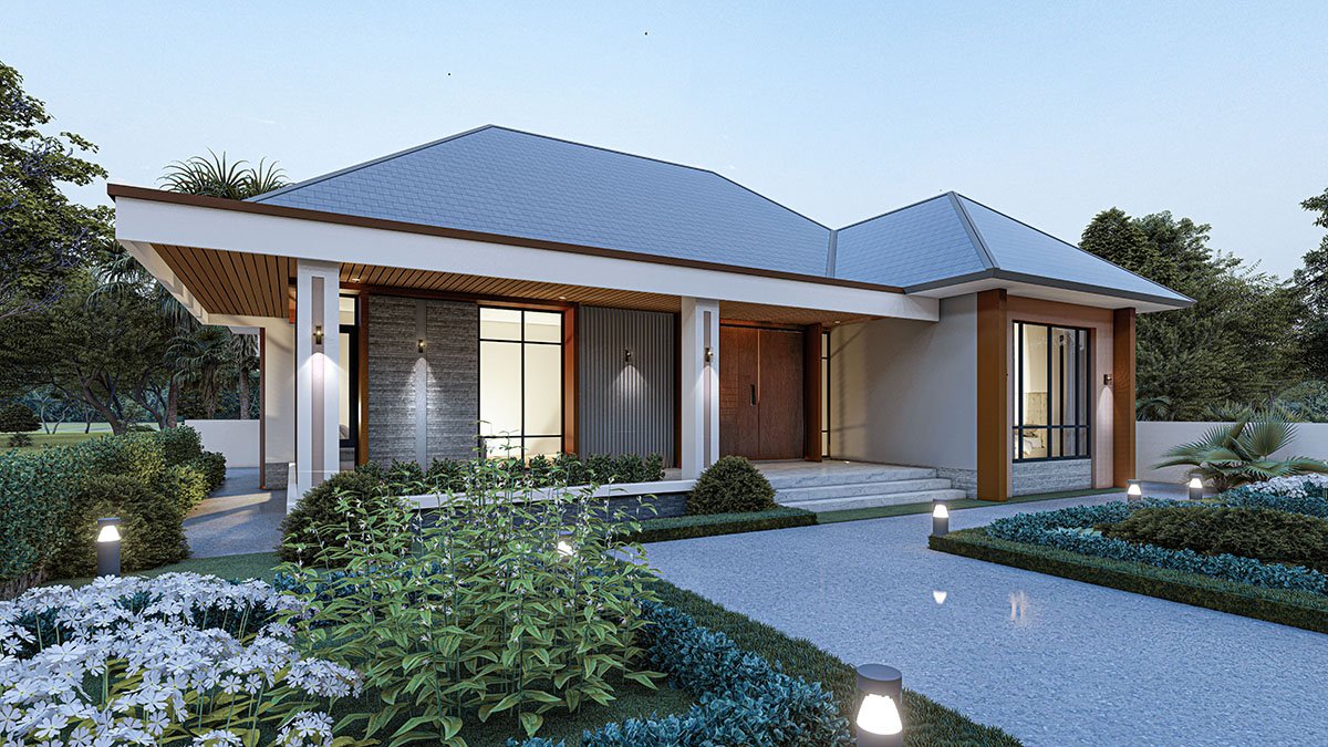 ซินแสได้ทำการออกแบบและวางแผนผังบ้านชั้นเดียว สไตล์ Contemporary