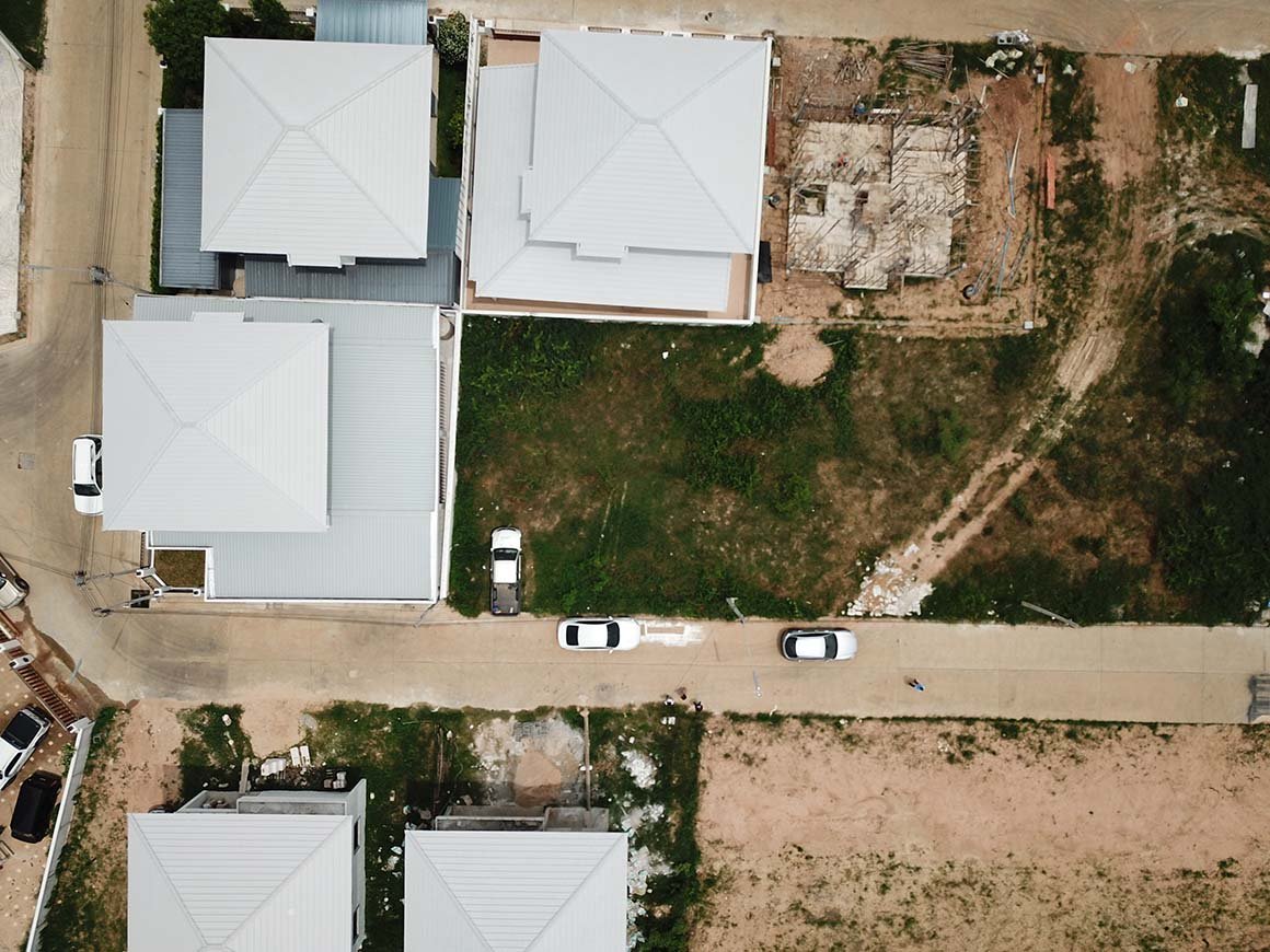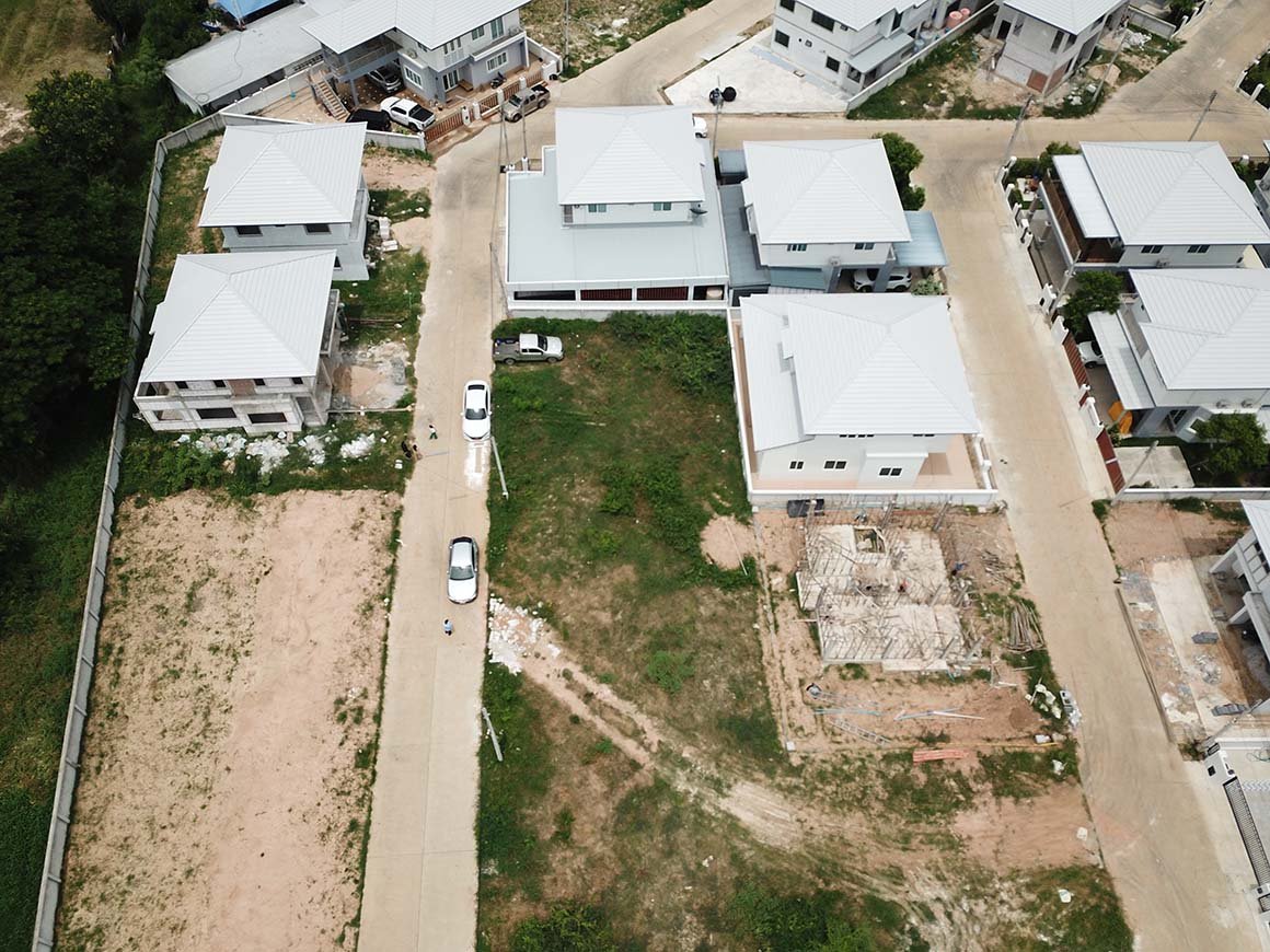 ภาพมุมสูง เพื่อใช้ในการกำหนดลักษณะการจัดสวนในอนาคตหลังจากบ้านเสร็จแล้ว